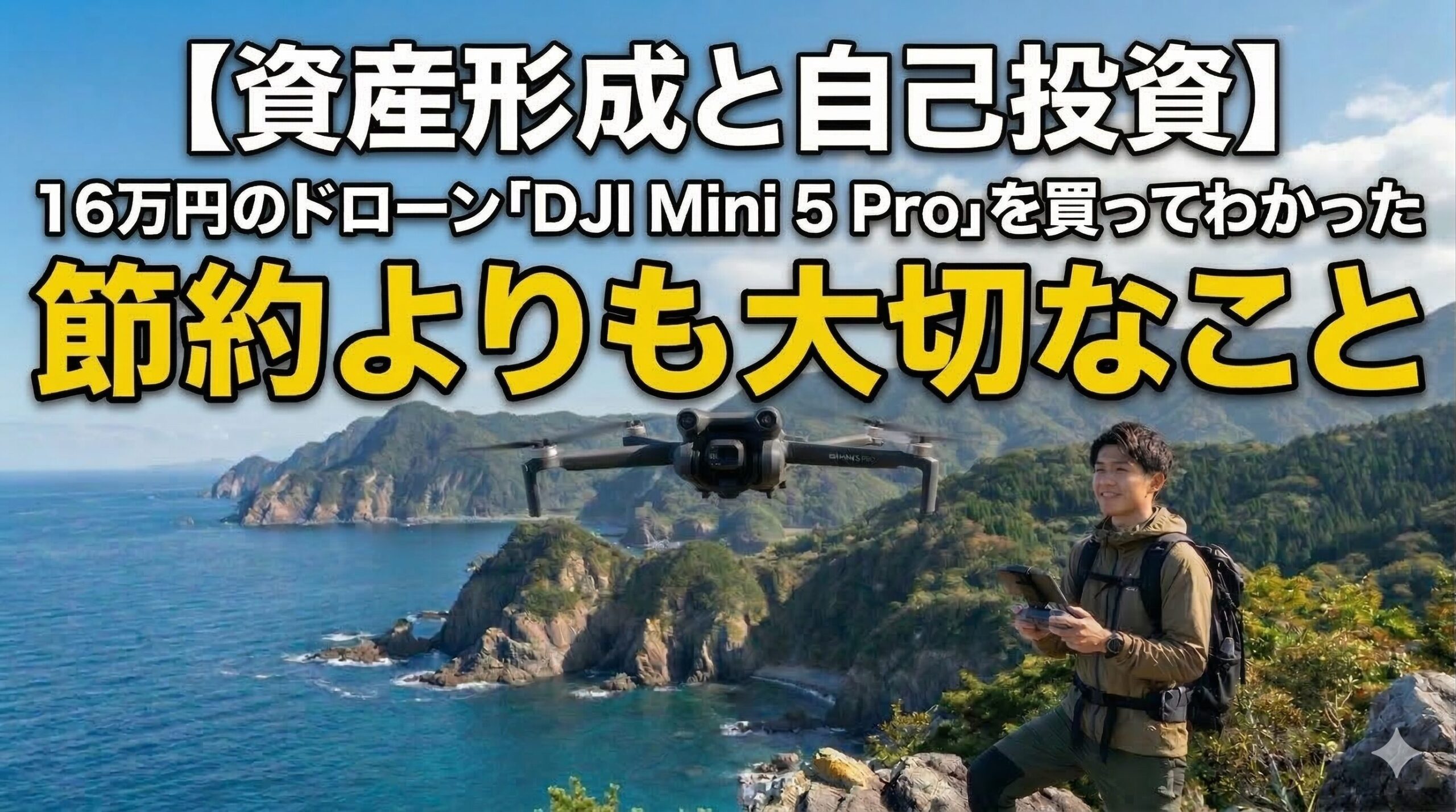 「自己投資をして、経験にお金を使おう!」と決心したものの、無駄遣いはしたくありません。投資家としてのシビアな目線で「本当に自分の人生を豊かにしてくれるツールは何か?」を自問自答した結果、たどり着いたのが16万円の「DJI Mini 5 Pro」でした。