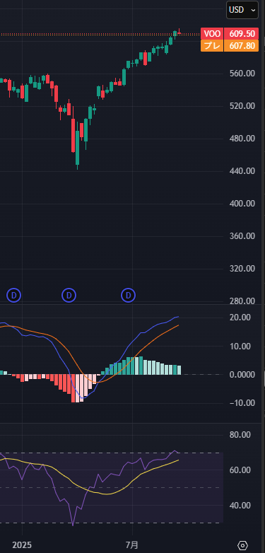 S&P500に連動するETF(VOO)のテクニカルチャートを使い、今後の展開を読み解いていきます。